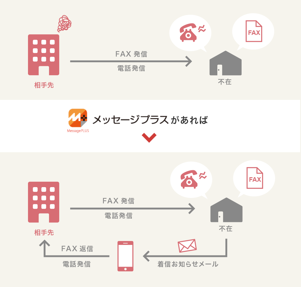 そんな時、メッセージプラスなら、いつでもどこでもFAXの送受信ができるので、大切な営業機会の損失を軽減できます。